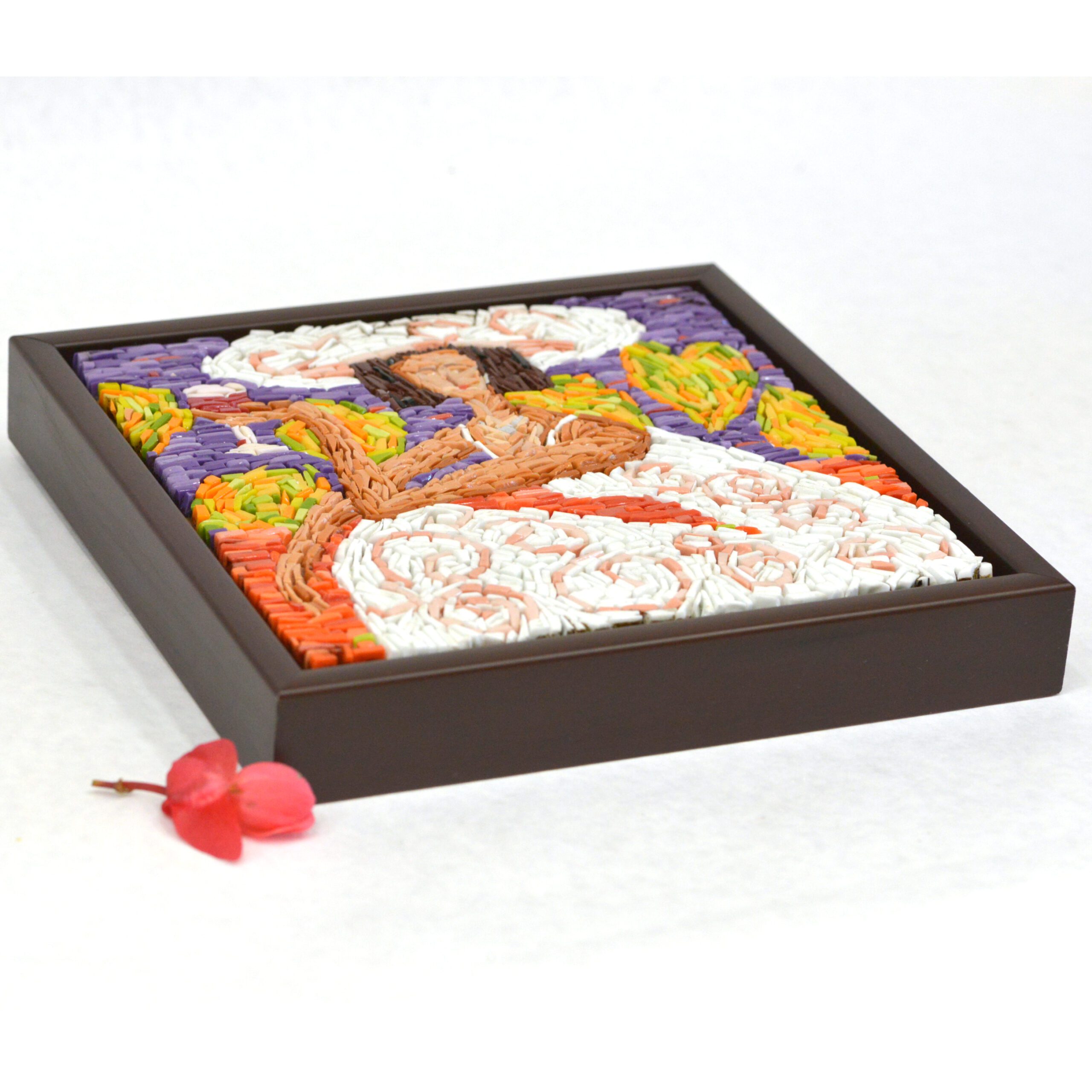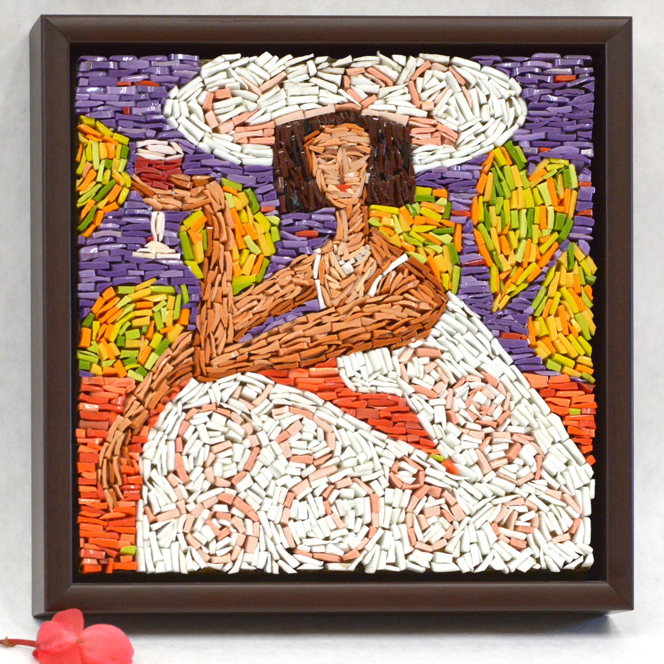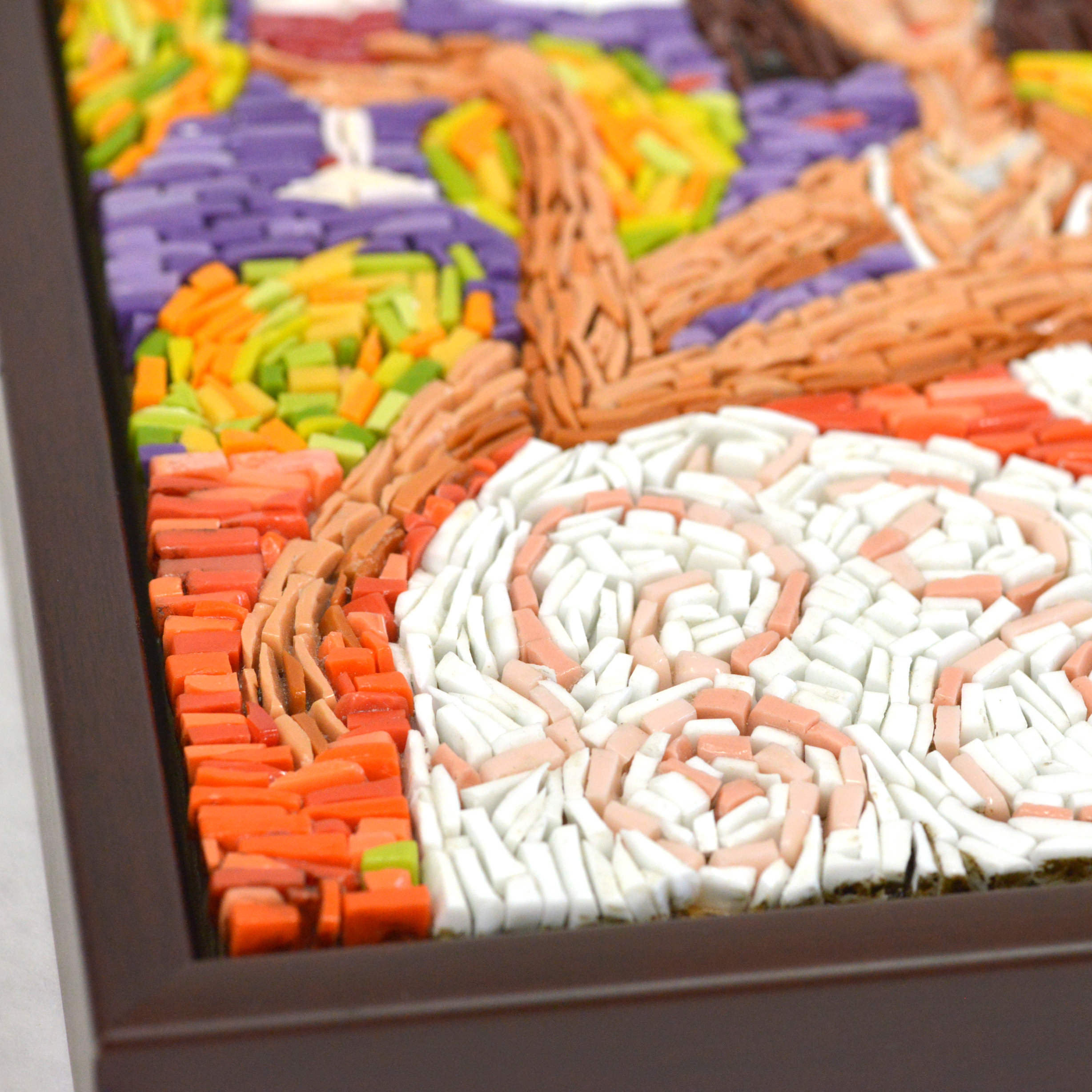 Micro mosaic, hanging piece, framed with solid wood frame from Roma Moulding. Size: 9.5″x9.5″