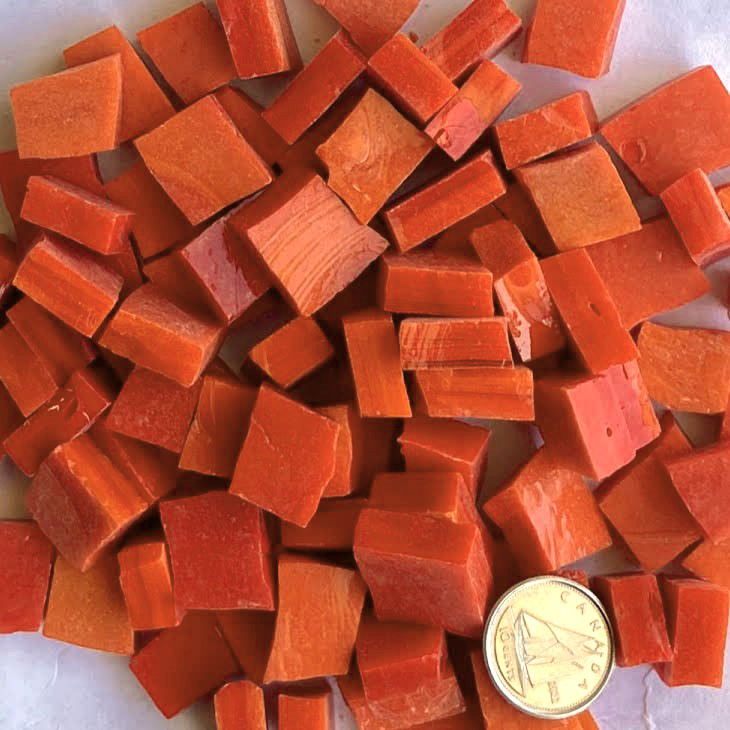 • Size of any Piece: Approx. 5/8″ x 5/8″ x 3/16″ thick. Size varies always.