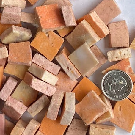 • Size of any Piece: Approx. 5/8″ x 5/8″ x 3/16″ thick. Size varies always.