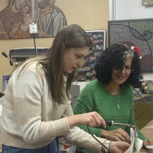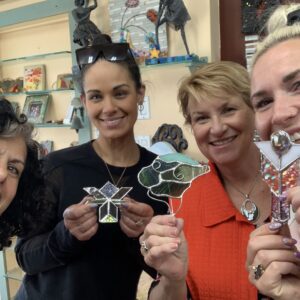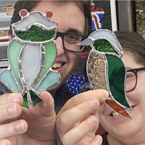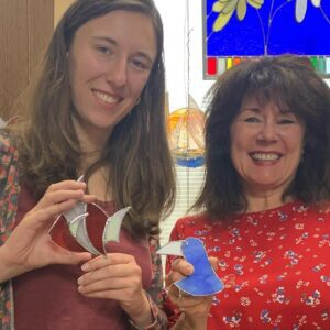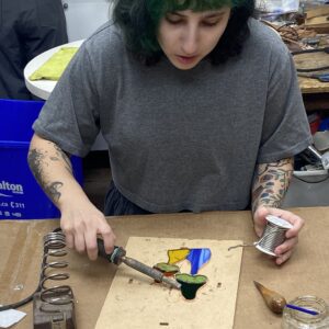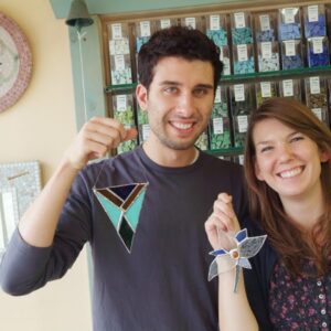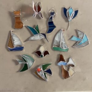 Aimed at adults or children 12 years or older. At the end of the two hour period, you will have finished a small project and will take it home with you. First, you will see briefly how glass is cut and you will try it, you will then choose a stained glass pattern from some pre-prepared designs, you will go through the whole process of creating a stained glass sun catcher with the Tiffany Technique which started by cutting, then grinding, foiling, soldering and cleaning. Full of fun and knowledge.